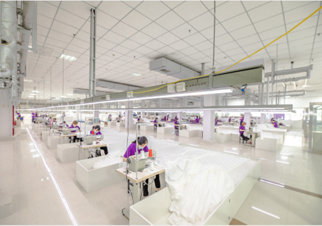 전문 제조 시설(원단, 봉제, 타올, 다운, 샤워가운, 기타)을 자체적으로 모두 보유하여 일관된 품질을 직접 생산하여 공급하는 직영체계를 구축하여 글로벌에 공급합니다.